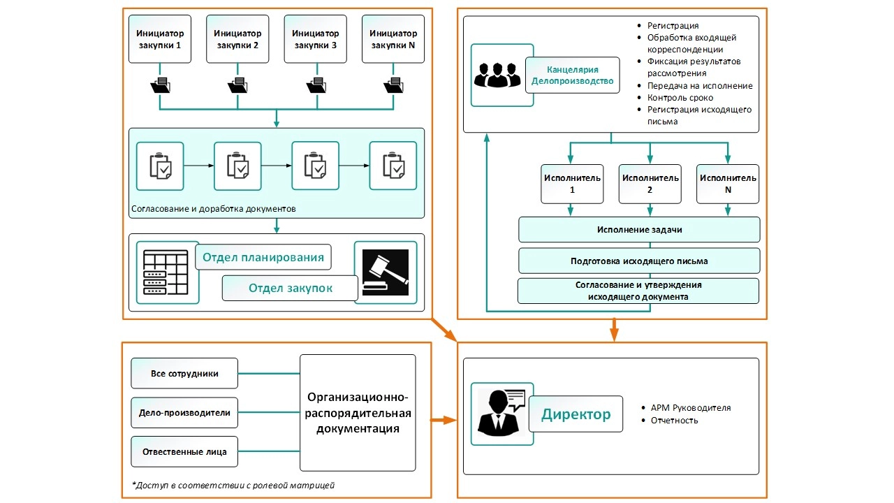 Цель проекта — внедрить систему электронного документооборота для автоматизации следующих задач: