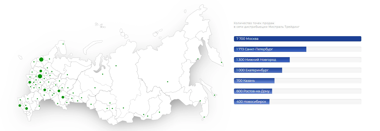 Торговая компания «Мистраль» — один из крупнейших производителей и дистрибьюторов круп и других продуктов питания, лидер в производстве высококачественного риса и бакалейной продукции, эксклюзивный дистрибьютер 14-ти брендов продуктов питания по всей России. Бренды Мистраль продаются в 50 000 точек в 86 городах России во всех федеральных и крупнейших региональных сетях России, среди которых — АШАН, METRO Group, X5 Retail Group, Магнит.