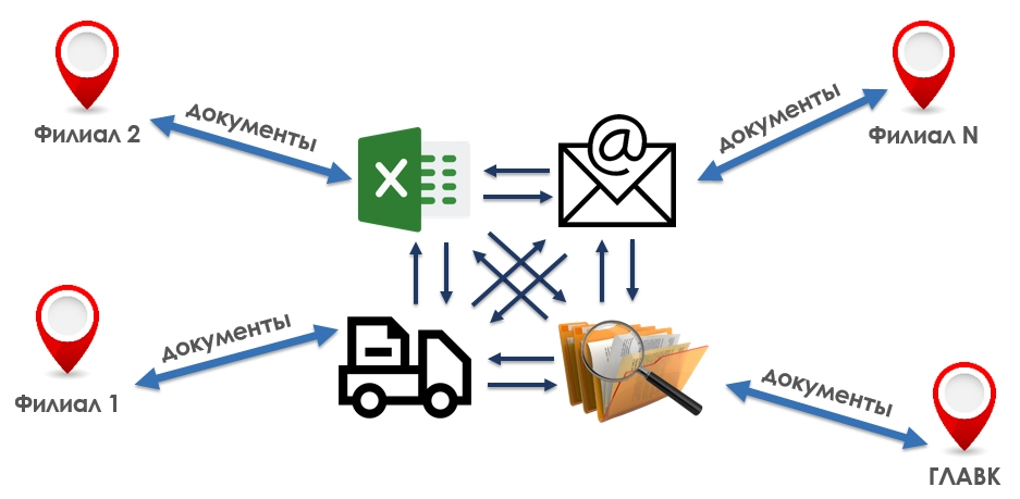 - Снизить потери документов. Цифровизовать бизнес-процессы взаимодействия отделов и филиалов.
