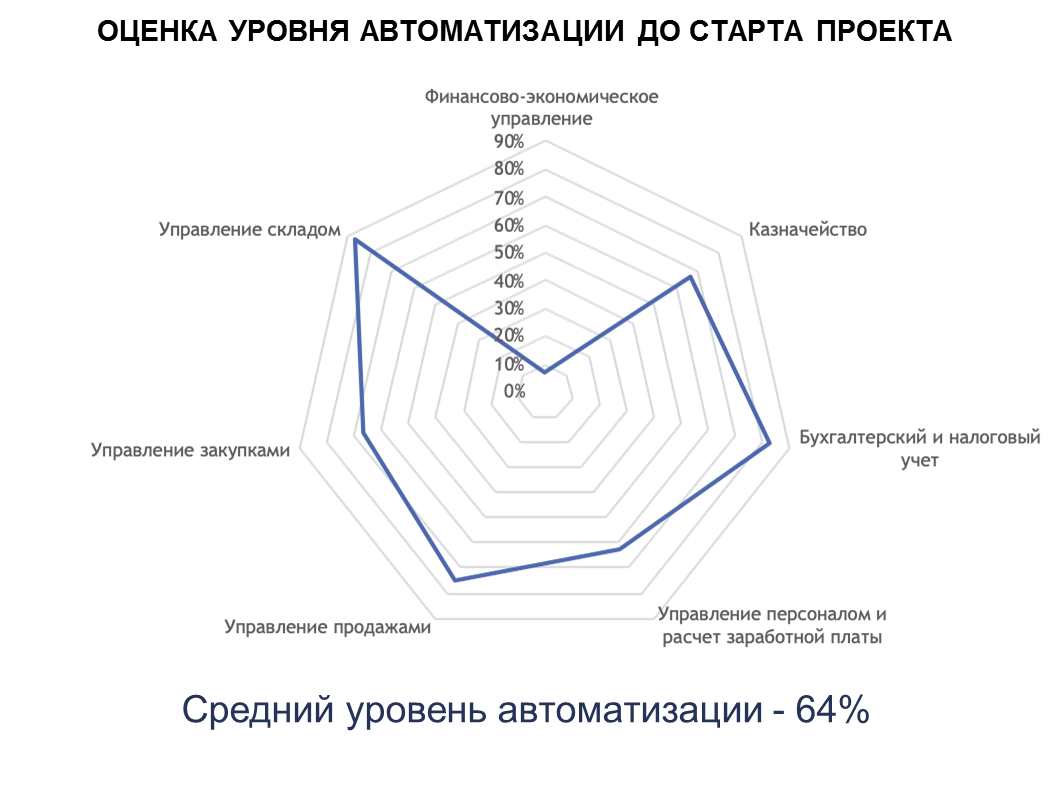 Историческая учетная система на базе «1С:Управление производственным предприятием» не обеспечивала выполнение всех необходимых задач по автоматизации процессов. Так, при проведении предварительного обследования выявлены проблемы в управлении и контролем за финансами, бюджетный процесс не отвечал потребностям бизнеса. Имелись сложности с ведением бухгалтерского учета и расчетом себестоимости. Не были автоматизированы процессы управления персоналом. Коммерческая служба и отдел снабжения вели учет в Microsoft Excel. Фактические складские остатки не соответствовали данным о них в учете. Отсутствовал автоматизированный контроль исполнения договорных обязательств.