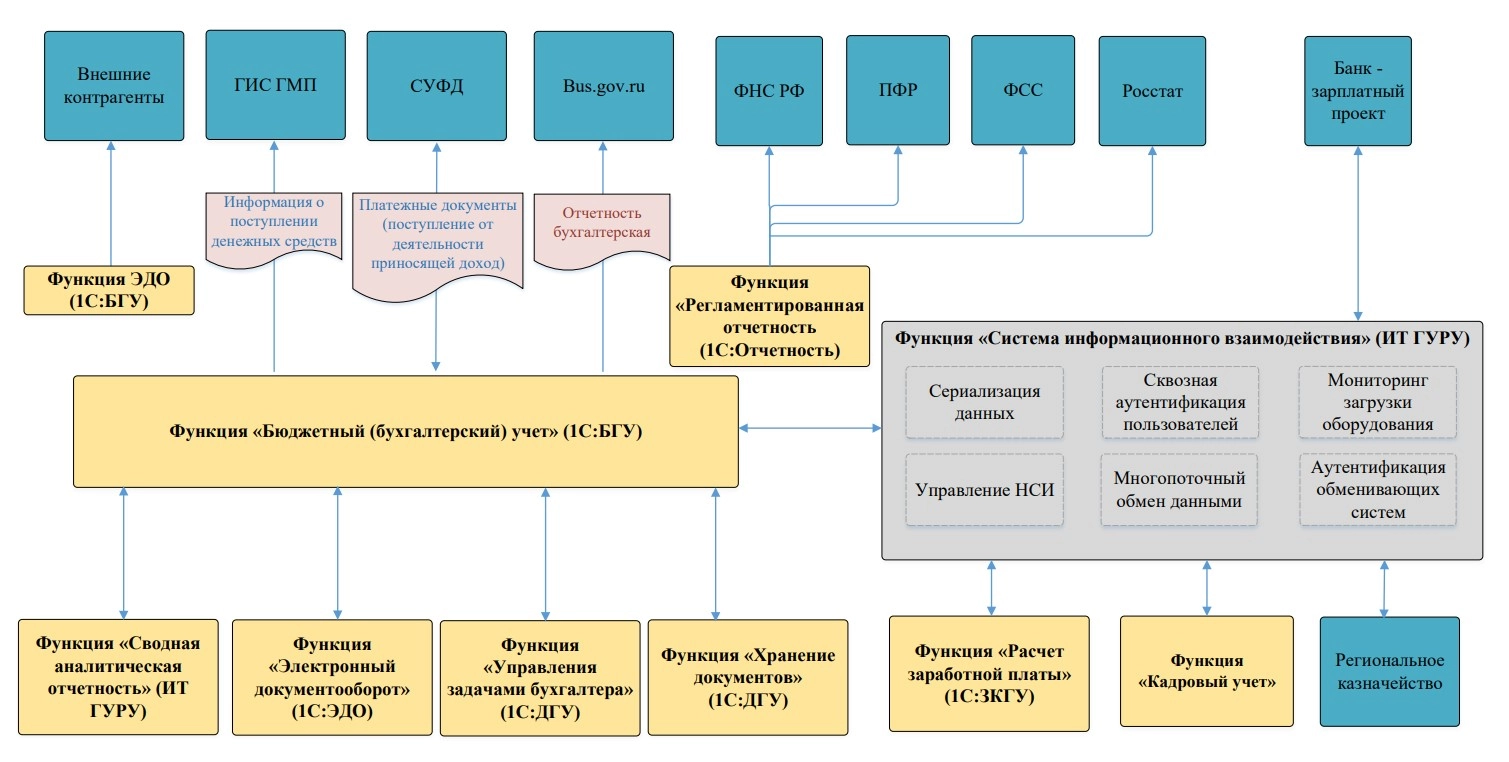 - информационное взаимодействие — интеграционная шина данных Dataguru;