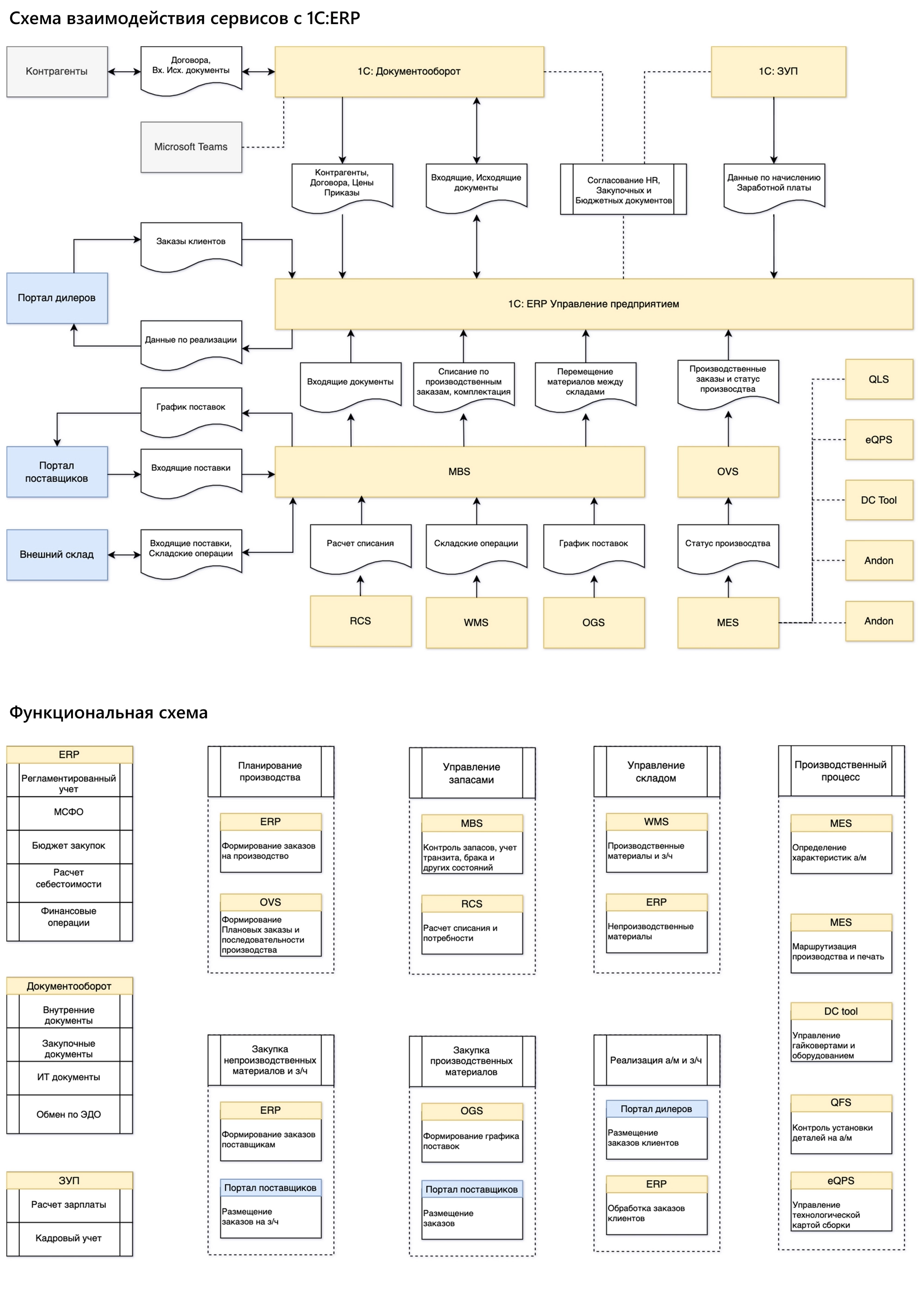 - в случае, когда функционал 1С:ERP не достаточен для оперативного контура, используется независимый сервис, реализующий оперативный функционал;