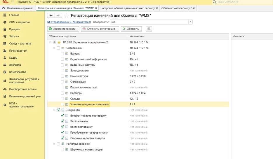 - Доработан и настроен обмен данными по web-сервису между «1С:ERP Управление предприятием» и «1С:WMS»,