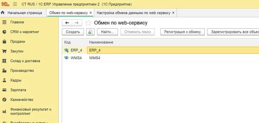 Интеграция по web-сервису между «1С:ERP Управление предприятием», ред. 2.5 — «1С:WMS Логистика. Управление складом» , ред. 5.0.