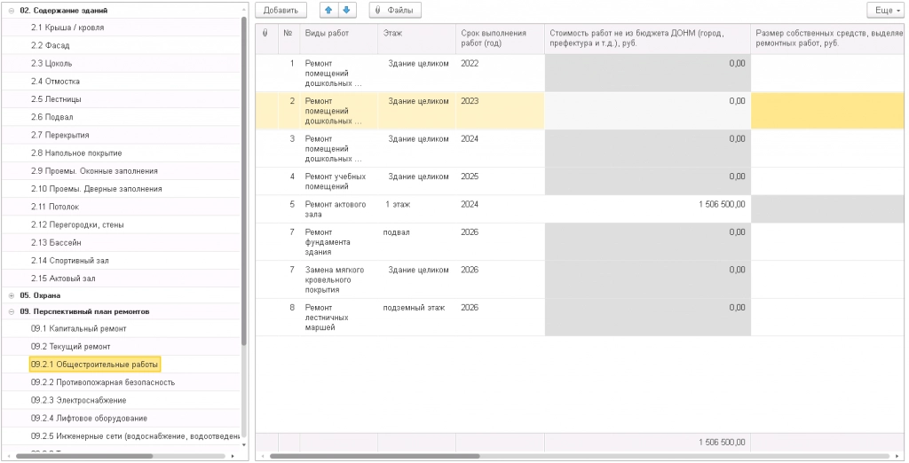 процессов эксплуатации, технического обслуживания и ремонтов объектов инфраструктуры системы образования, а также автоматизировать процессы планирования и организации работ по техническому обслуживанию и ремонту объектов имущества (зданий, сооружений, оборудования);