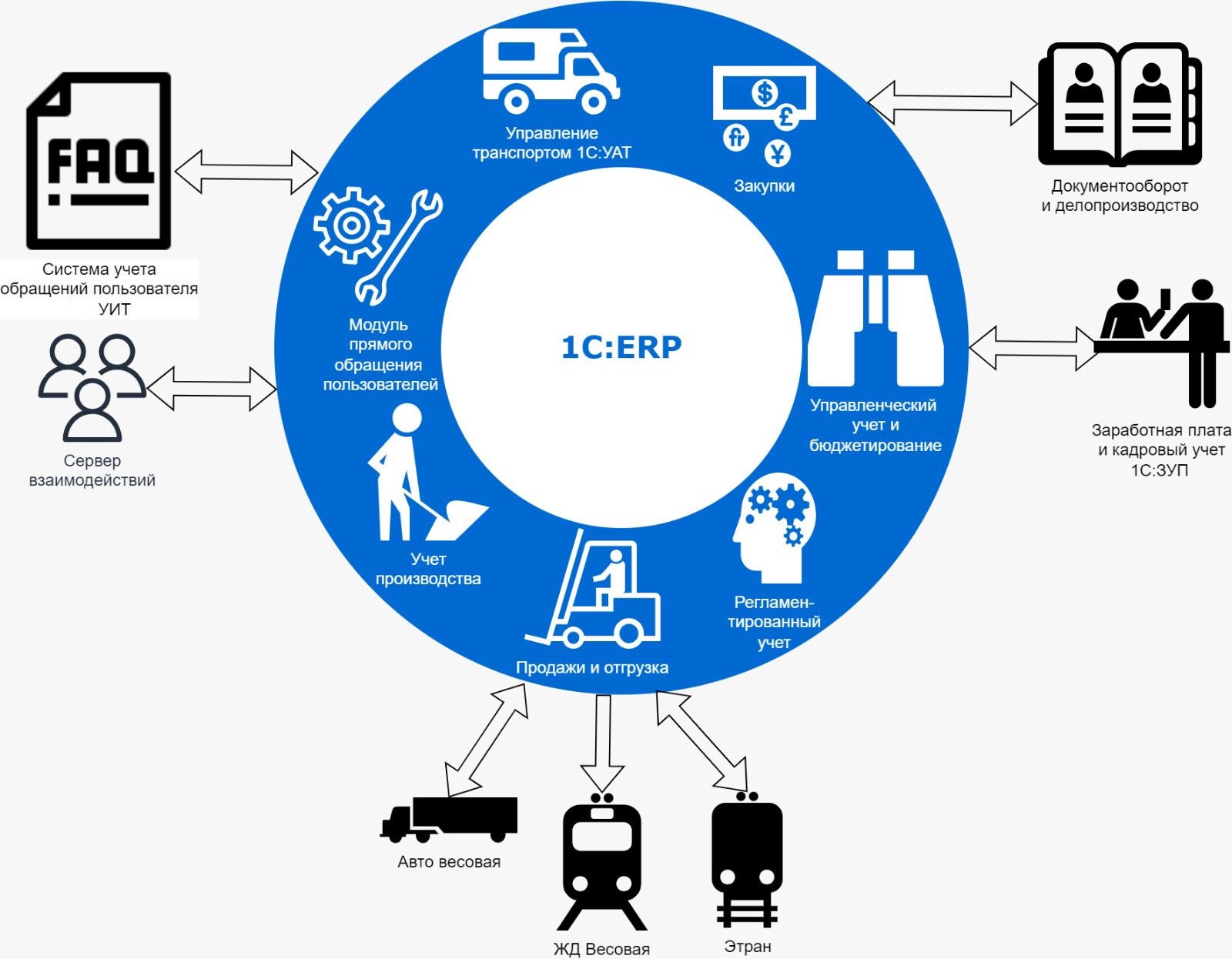 Для достижения целей было принято решение использовать программный продукт «1С:ERP Управление предприятием». Все дополнительные программы решили частично объединить, а частично перестать использовать: ERP-систему стороннего разработчика, Microsoft Excel, самописную программу для весовых. В результате: