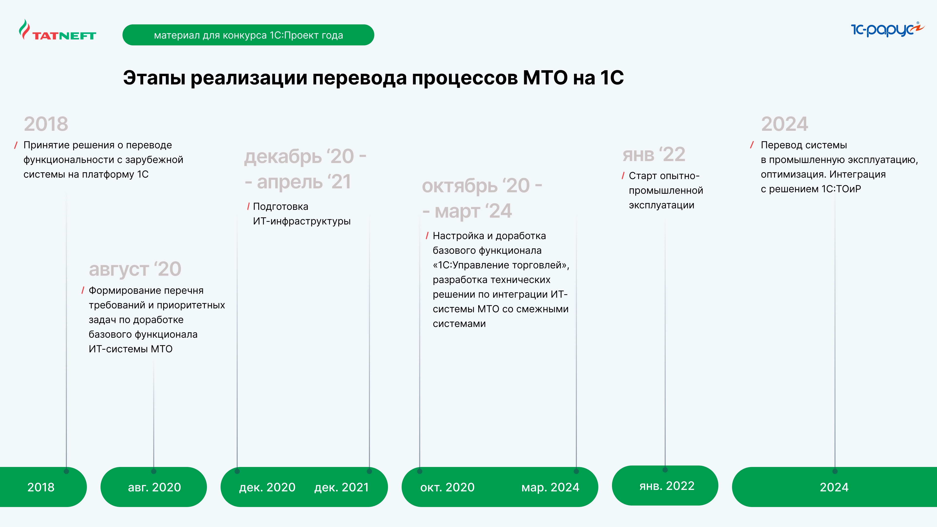 В настоящее время реализуется принятая ранее стратегия по переходу группы «Татнефть» на отечественные системы автоматизации. Зарубежная система, которая ранее использовалась в компании, имела ряд недостатков, среди которых высокая стоимость владения и доработки. Это ограничивало количество сотрудников, которые могли использовать ее функционал.