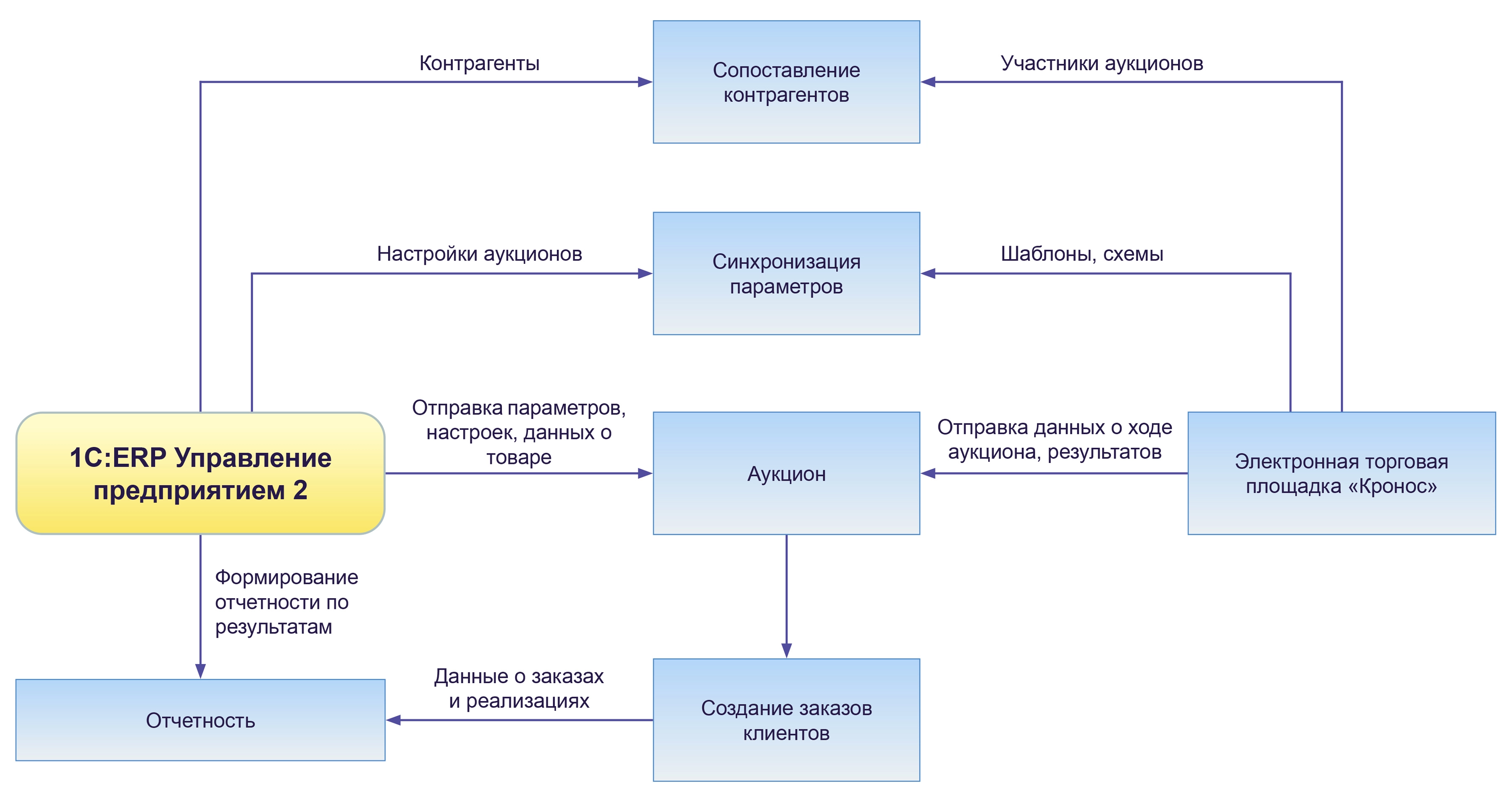 Внедрение автоматизированного решения для работы с торговой площадкой «Кронос» в 1С ERP позволило значительно повысить эффективность и надежность процесса торгов.