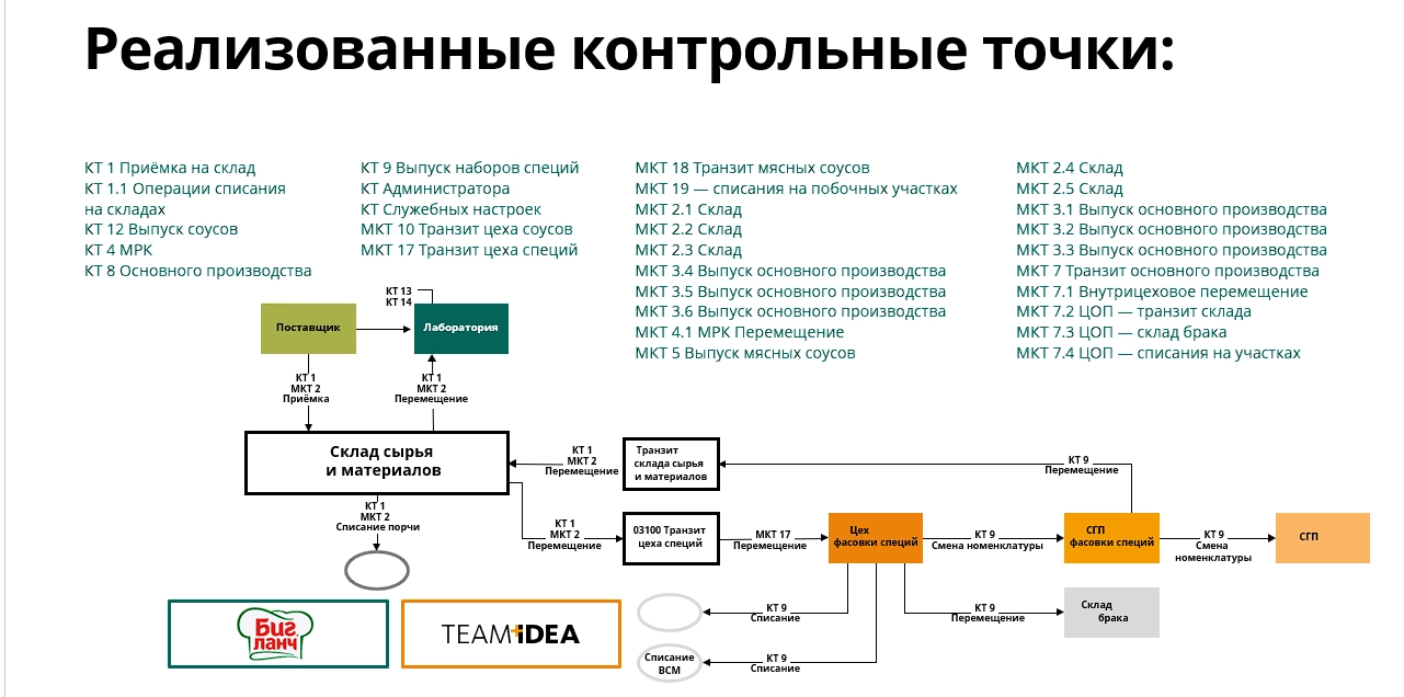- обеспечения прослеживаемости партий производства по контрольным точкам и соблюдения требований законодательства при обнаружении некачественной продукции и полуфабрикатов;