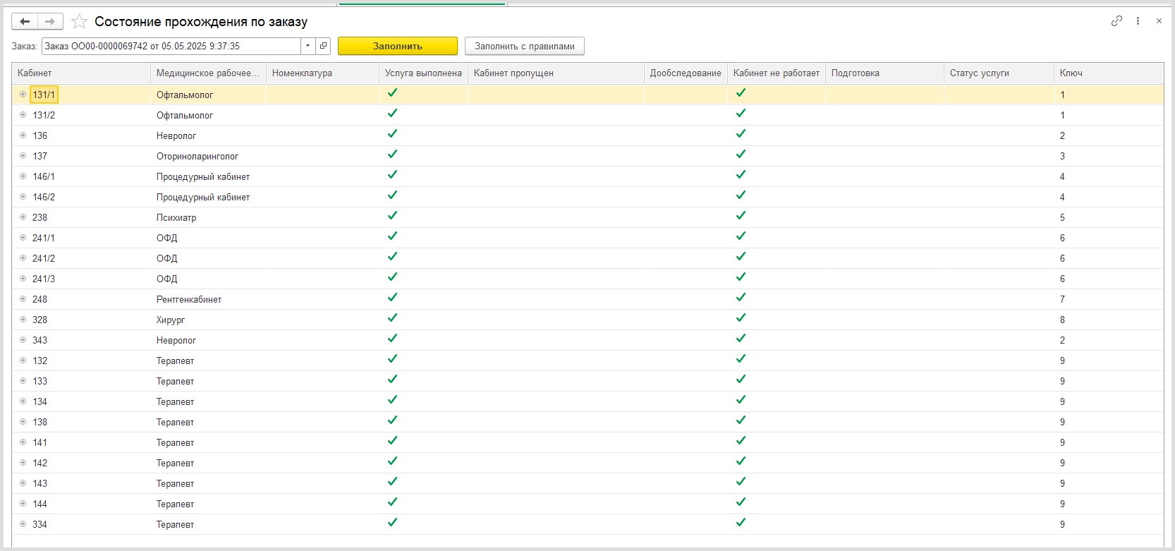 - Автоматическая регистрация пропущенных посещений кабинетов пациентами для корректировки дальнейшего планирования.