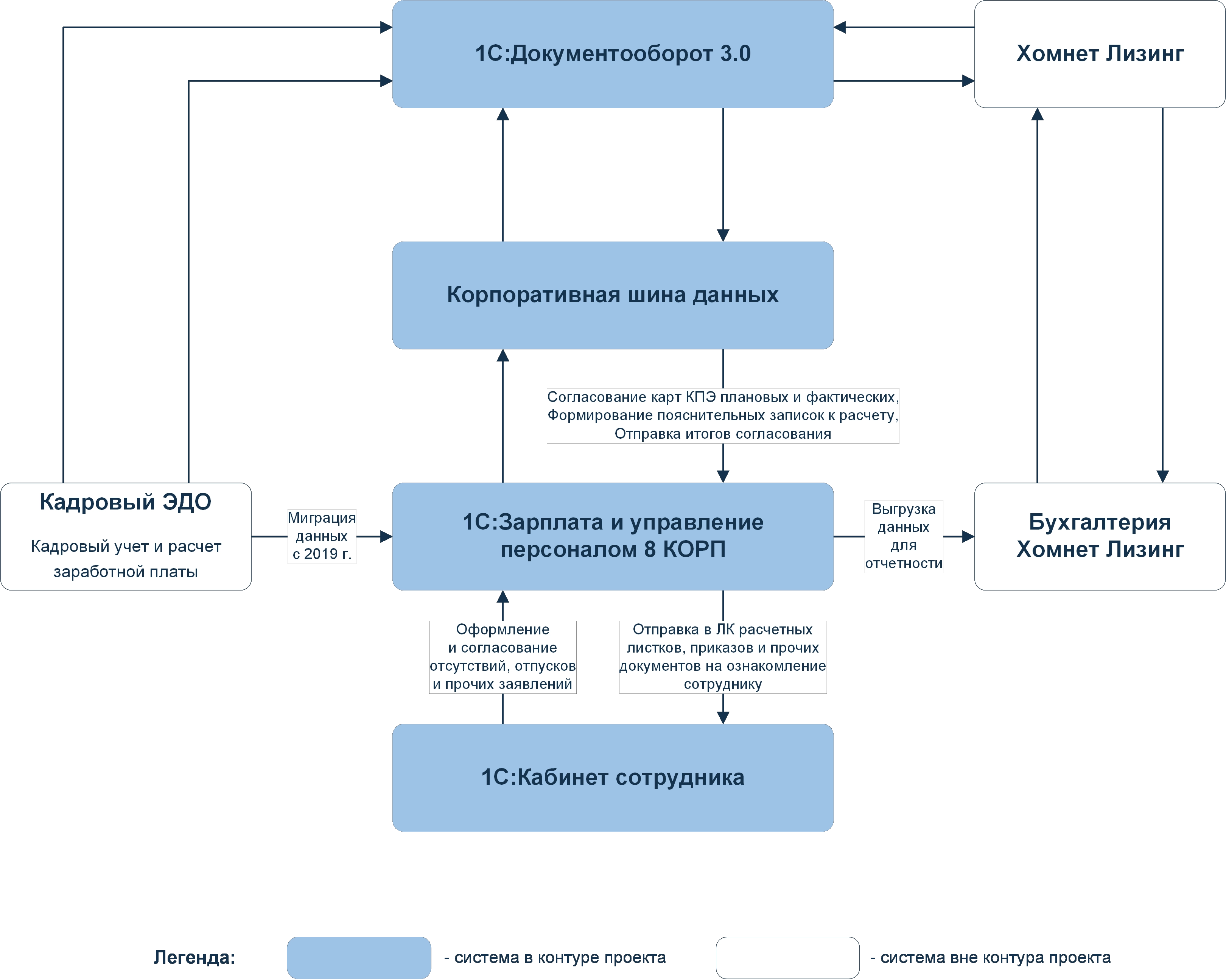 - «1С:Зарплата и управление персоналом КОРП» в «Хомнет Лизинг: Бухгалтерия» — выгрузка данных для формирования бухгалтерской отчетности.