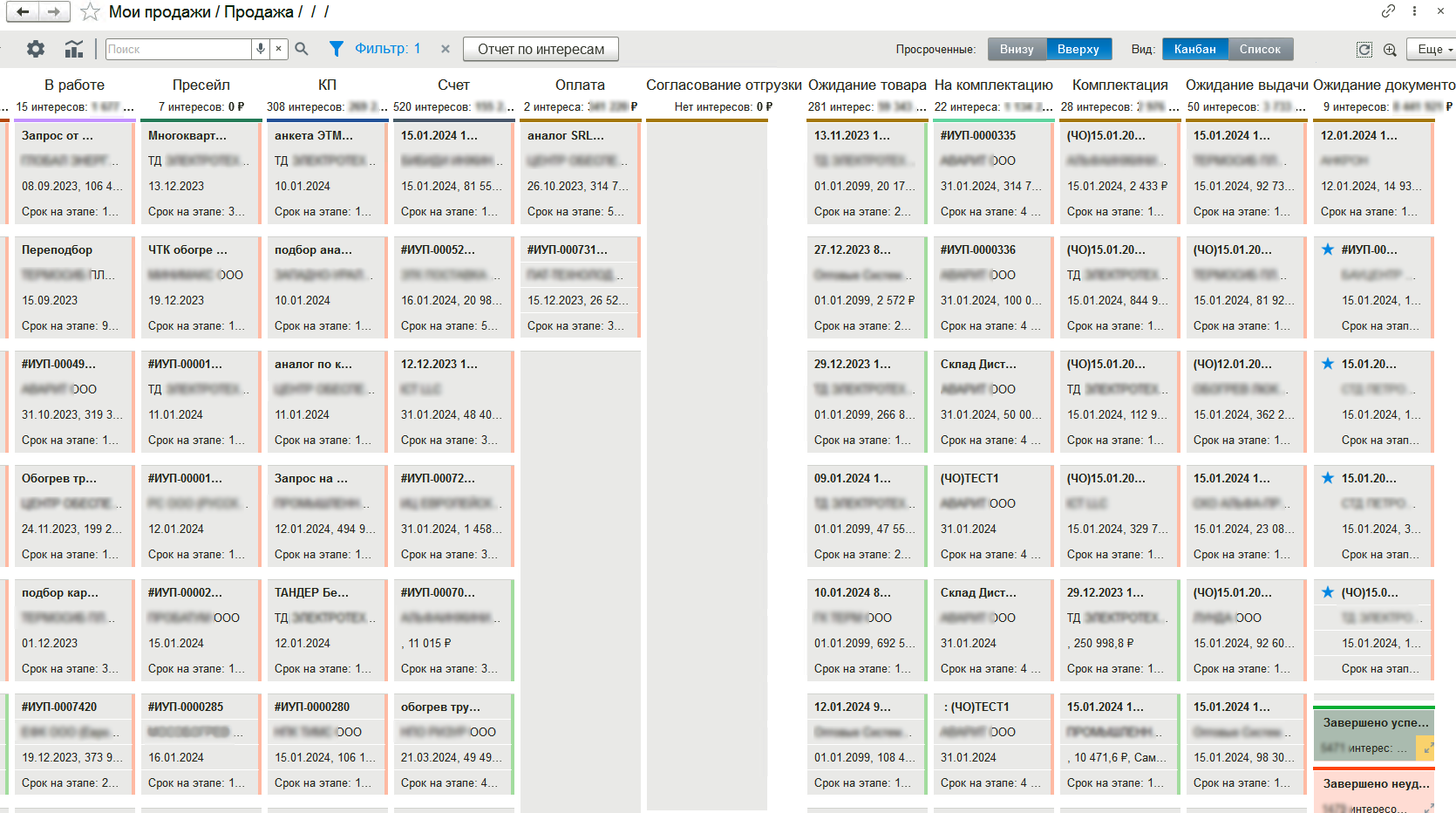 - Стало возможным оперативное получение аналитики продаж: количество интересов и суммы сделок на каждом этапе воронки и по каждому менеджеру, сроки отгрузок товаров, достигнутые договоренности.