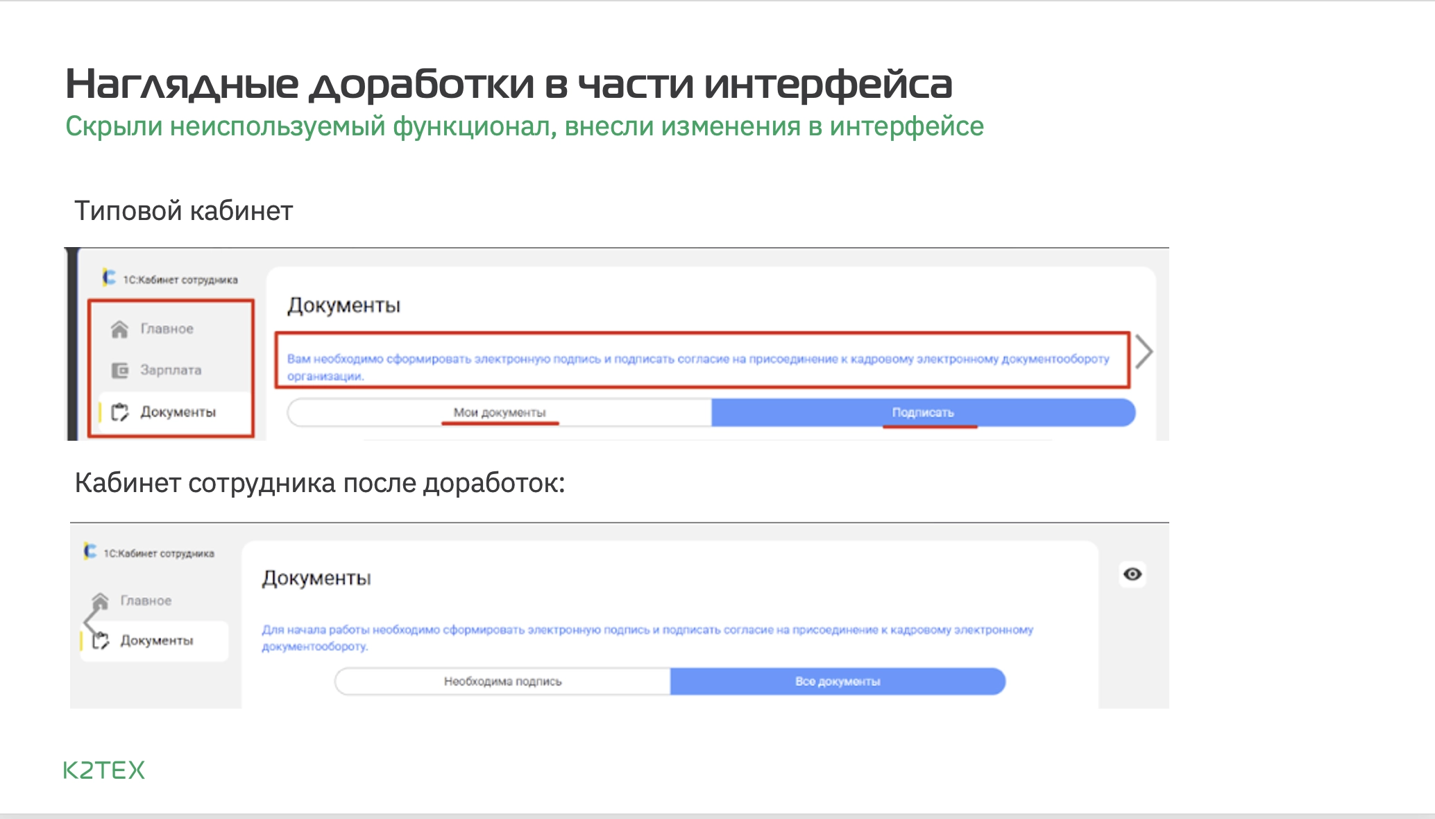 В компании «К2Тех» решили задачу цифровизации кадровых процессов и повышения их эффективности с помощью внедрения кадрового электронного документооборота на базе «1С: Кабинет сотрудника». В результате компания оптимизировала работу с документами, что позволило сэкономить около 10 миллионов рублей в год. Уникальность проекта заключается в большом объеме оцифрованных документов (более 8000), вовлечении кадрового отдела с самого начала, а также в доработке системы для учета неподписанных документов и автоматизации процессов.